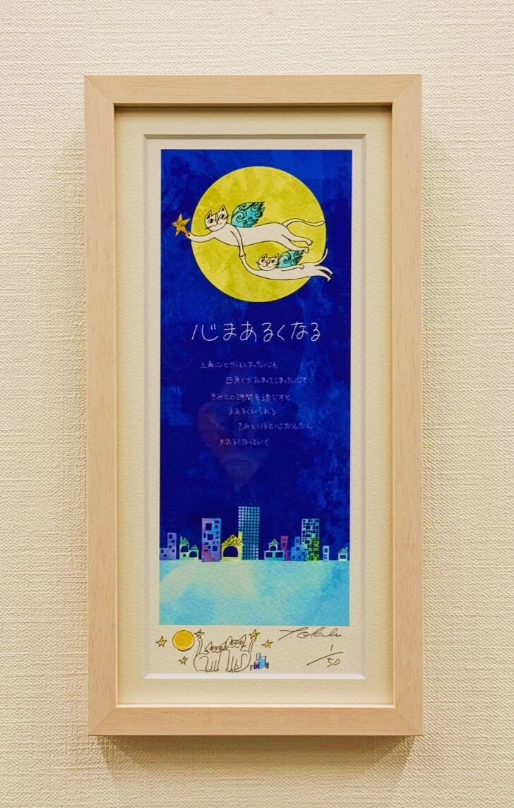 小さいサイズで、お部屋のちょっとした空間を愛らしく彩ります。直筆ミニイラスト入りのスペシャル版画です。