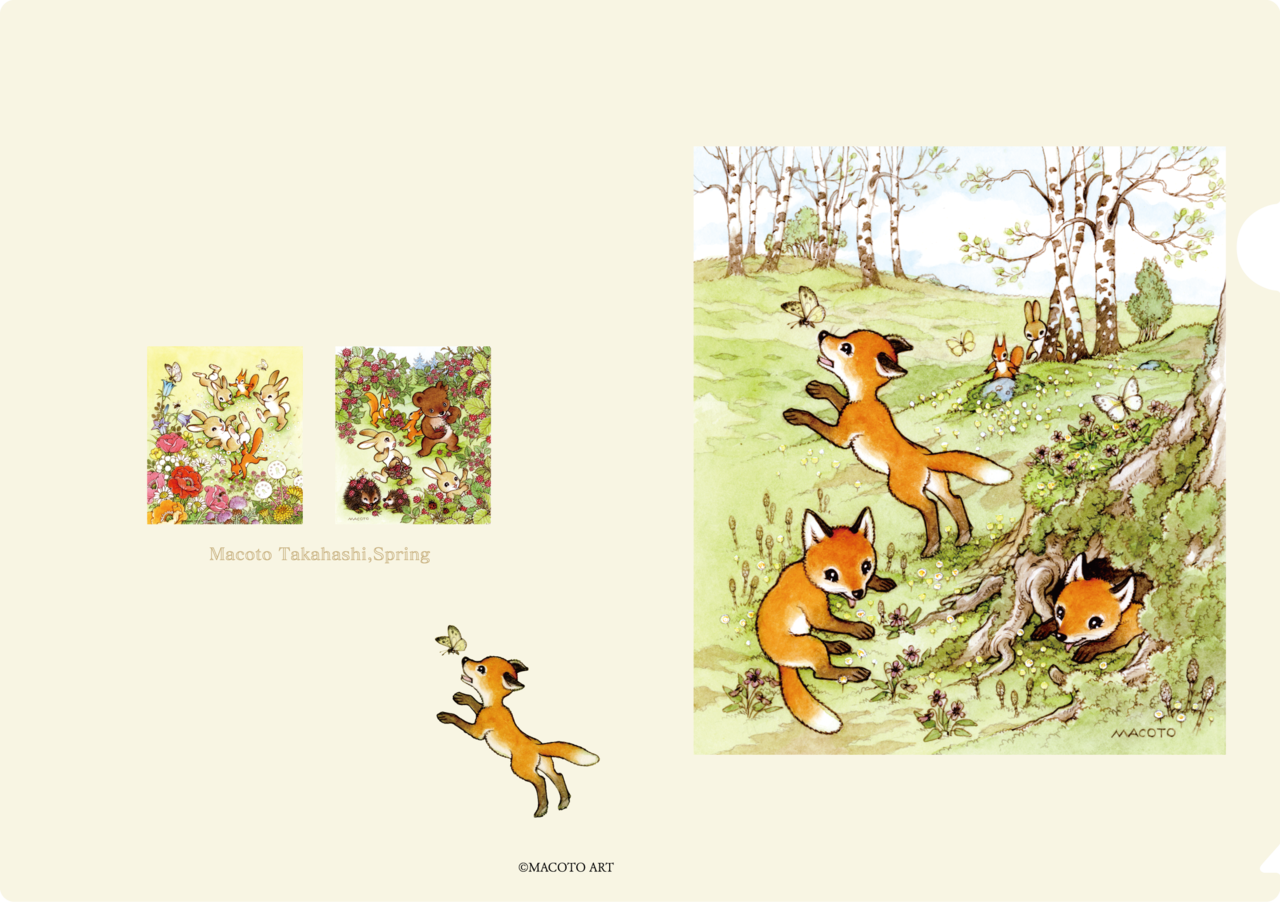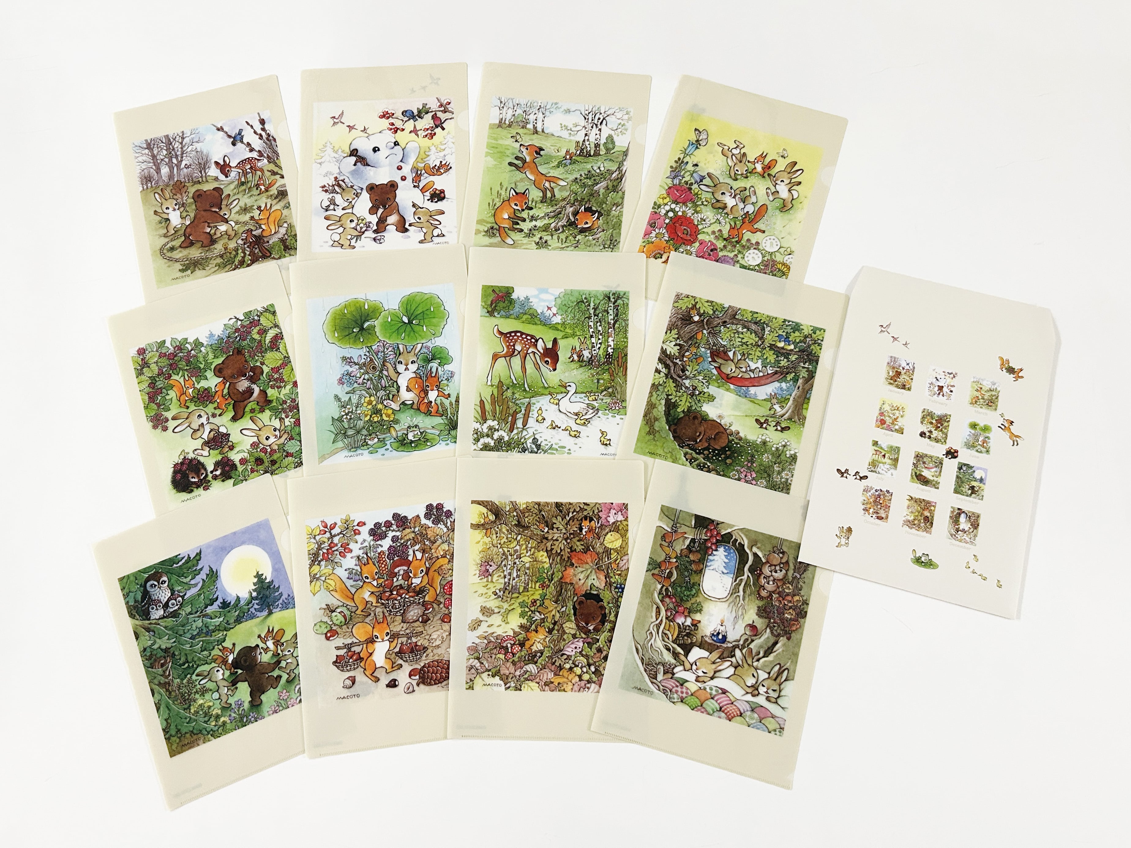 1981年作、学研の「おたより帖」のために描かれた動物たちの世界が、12か月のクリアファイルセットになりました。