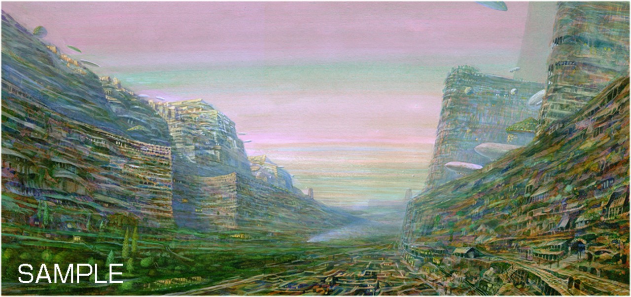 井上直久・絵本イバラードの旅より『駅前の夕暮れ』版画